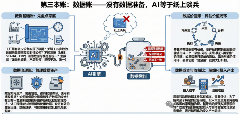 。普遍存在数据质量稀疏、采集碎片化、系统不一致等“数据病” 。因此,在谈AI模型之前,必须先算清“数据账”。