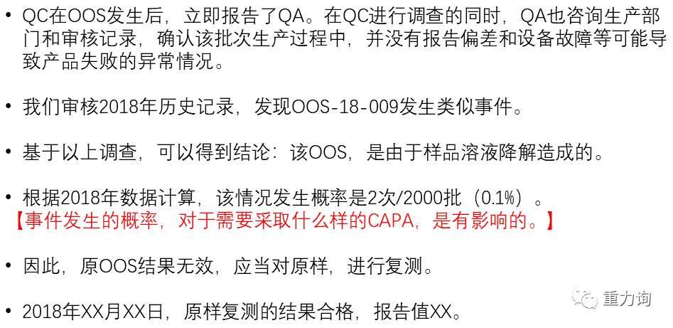 如果OOS报告没有写好,我们看不懂,就是OOS调查没有做好